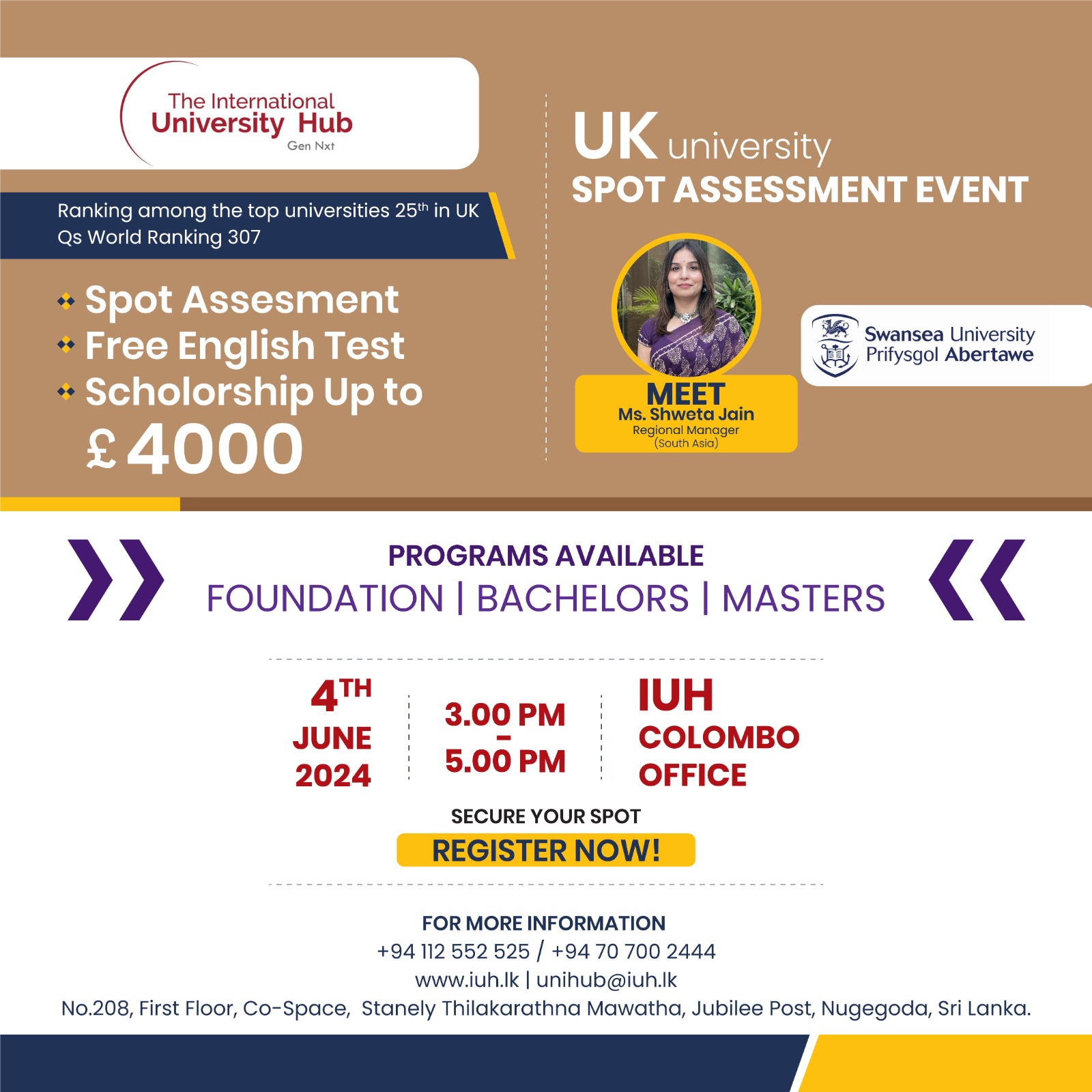 Ready for an extraordinary opportunity? Join us on June 4th for Spot Assessment event to study in Swansea University!